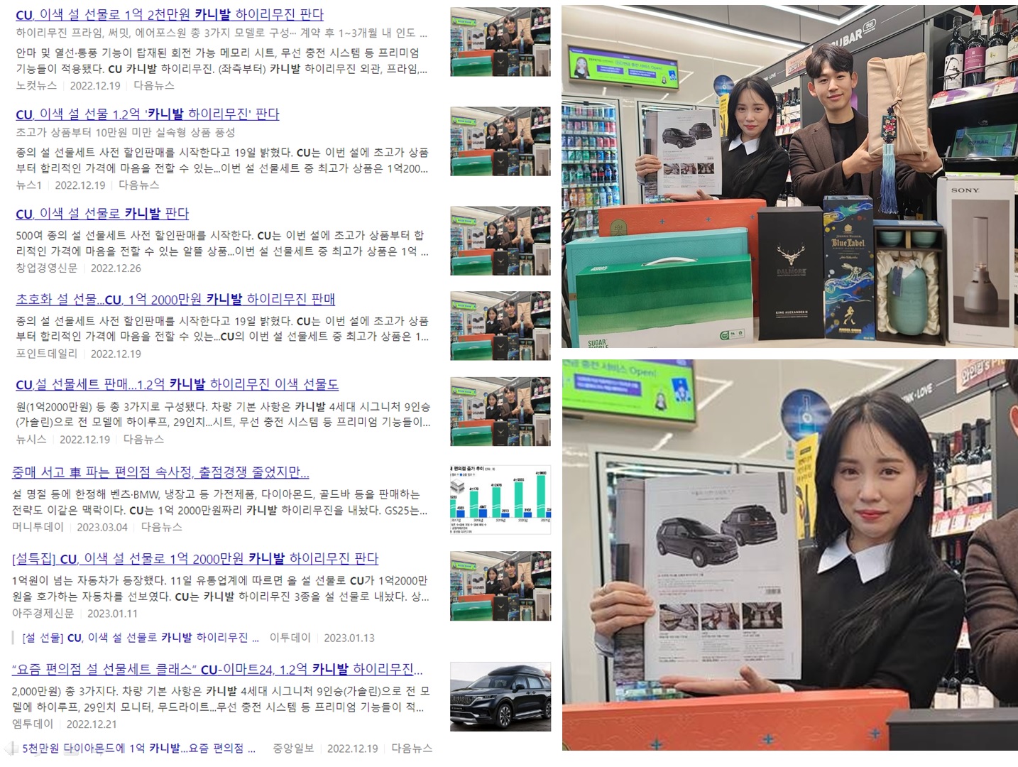 편의점 CU에서는 1억 2천만원 카니발 하이리무진 판다.