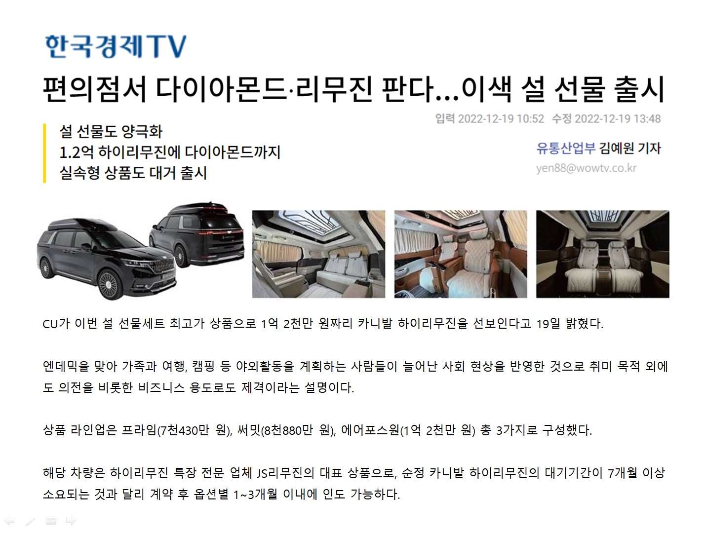 한국경제TV _ 편의점서 1억 2천만원 리무진 판다