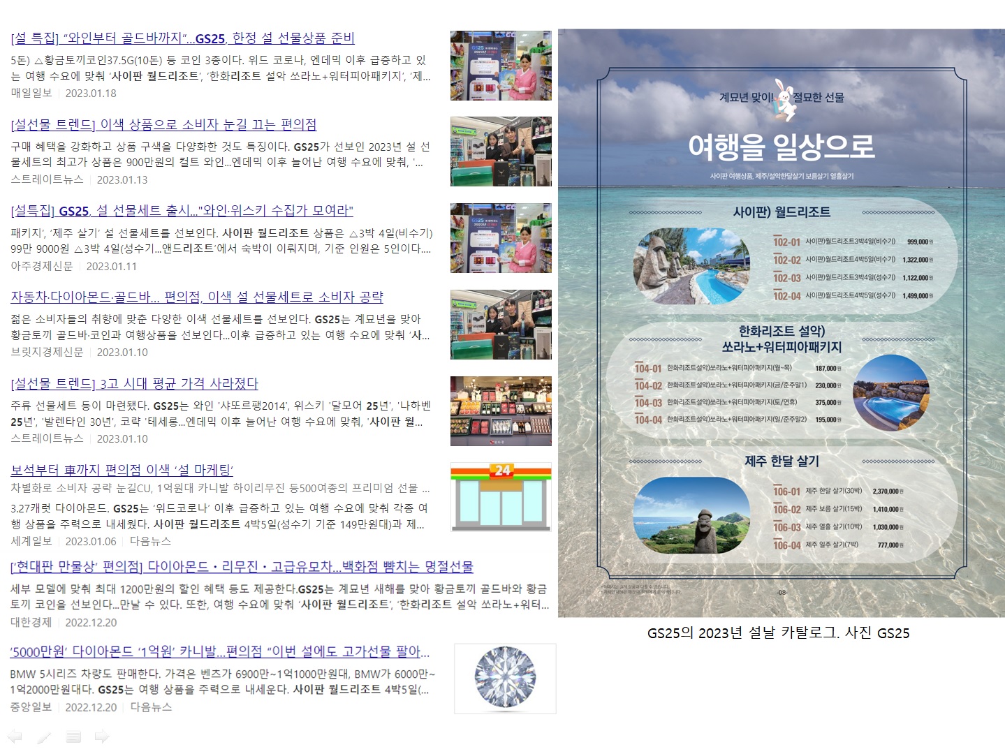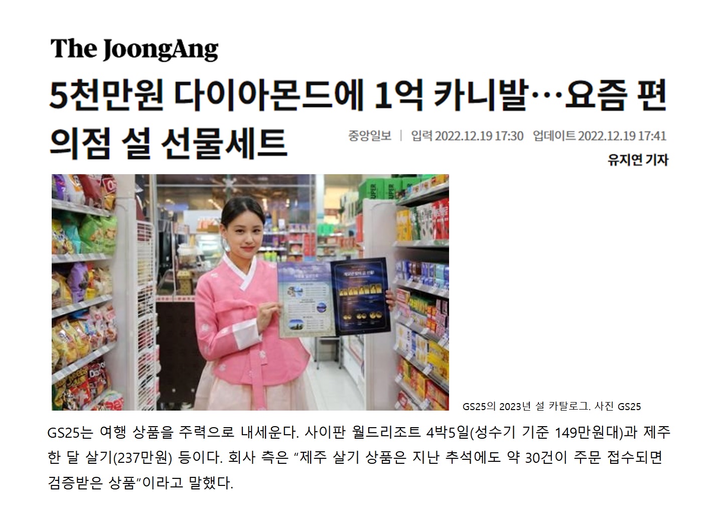 중앙일보 _ GS25 여행 상품 출시 _ 사이판 월드리조트 / 제주 살기 / 한화 설악 등