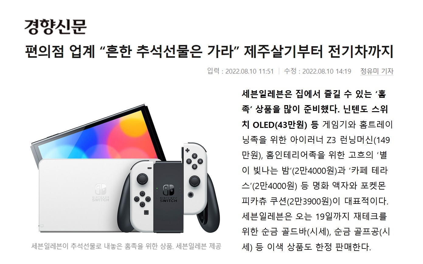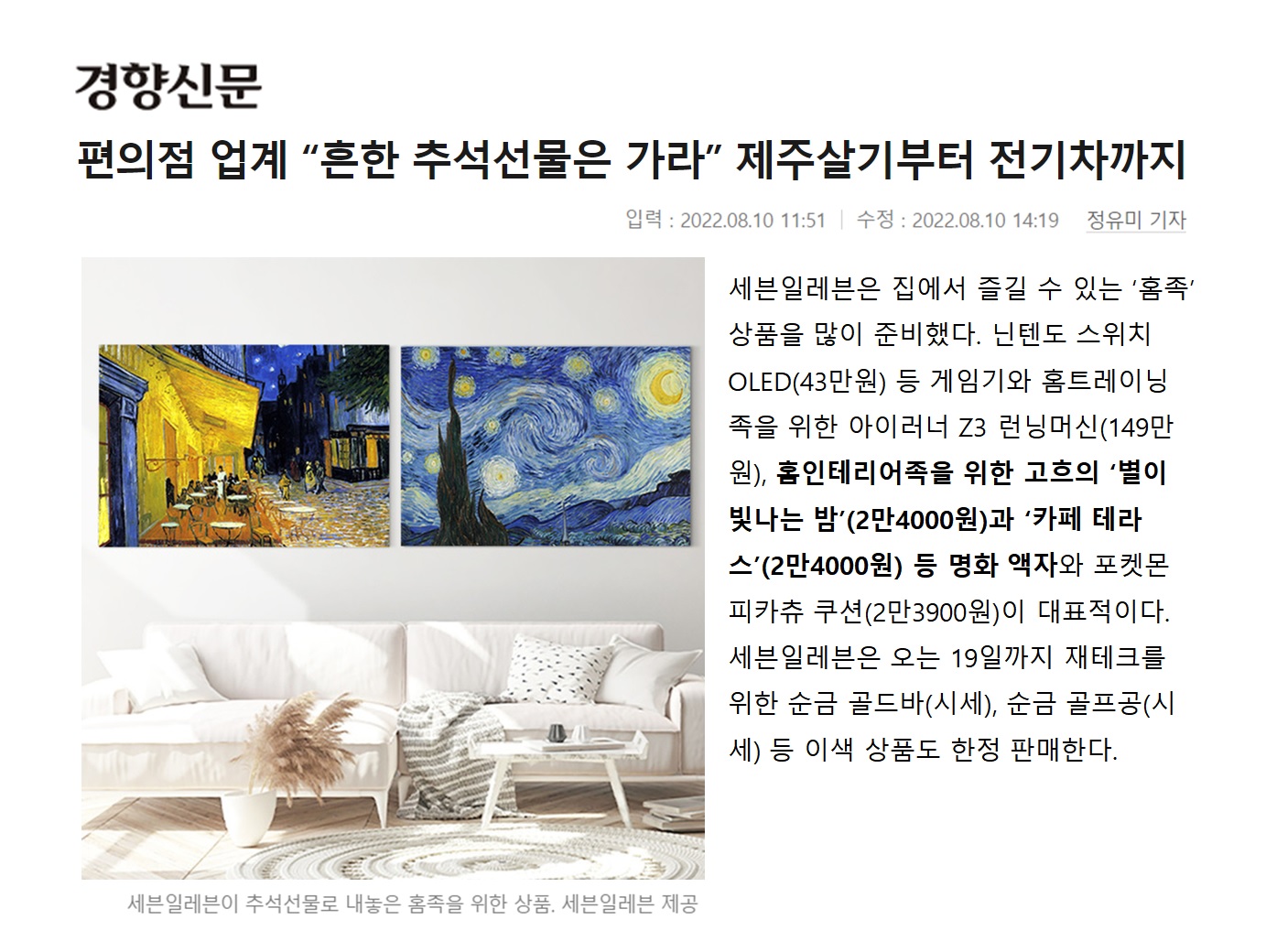 경향신문 _ 세븐일레븐 _ '홈족' 상품 _ 닌텐도 게임기 / 반고흐 명화 출시