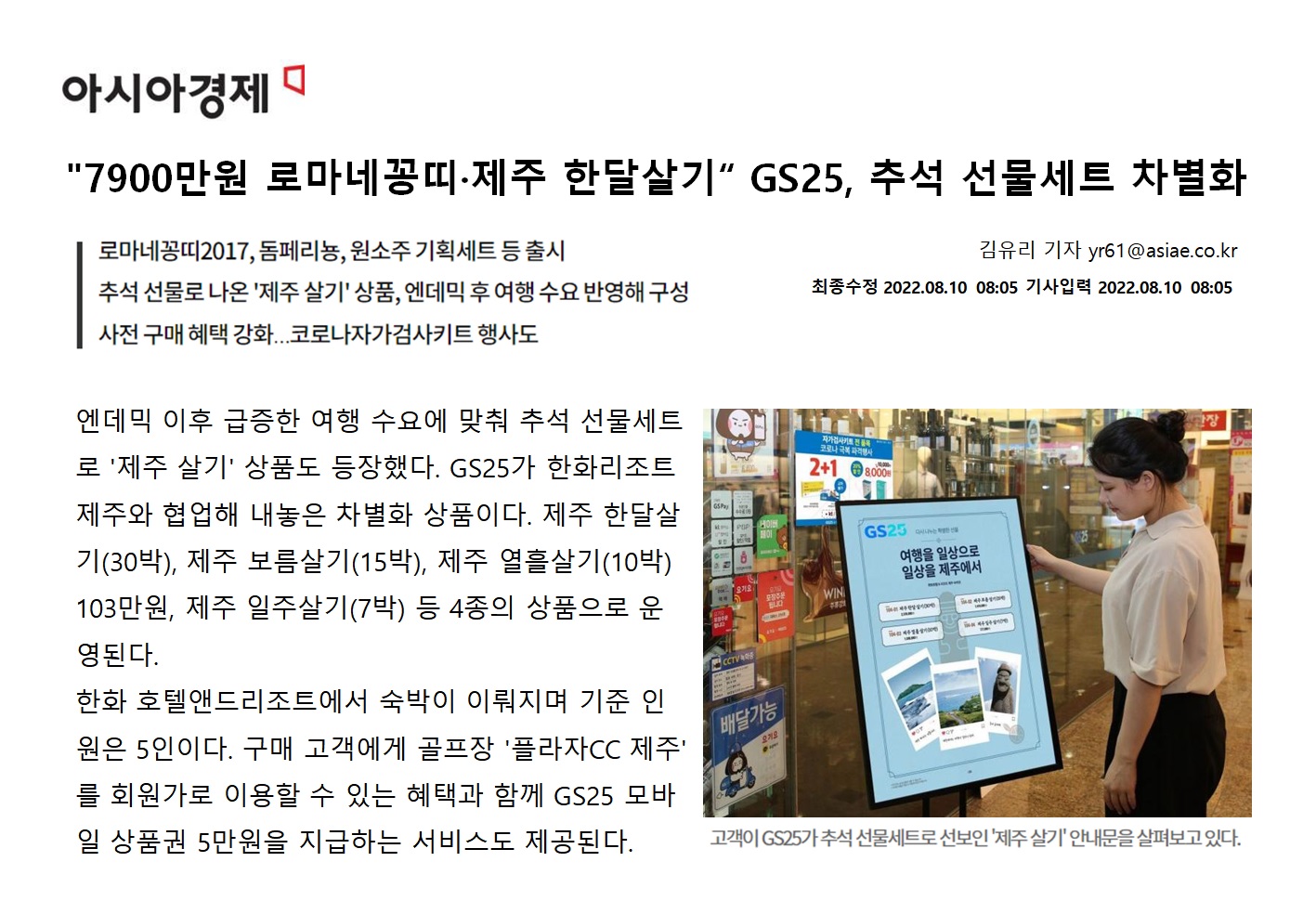 헤럴드경제 _ GS25 제주살기 _ 편의점에서 처음 선보인 이색 여행 트랜드 상품
