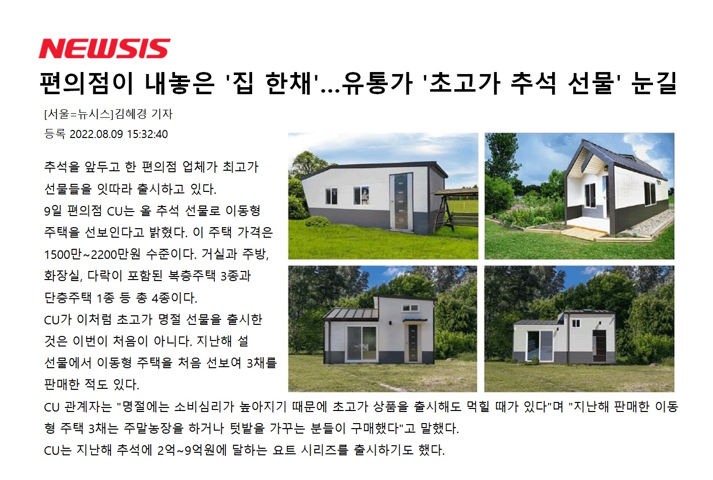 NEWSIS _ CU 편의점이 내놓은 '집 한채'...