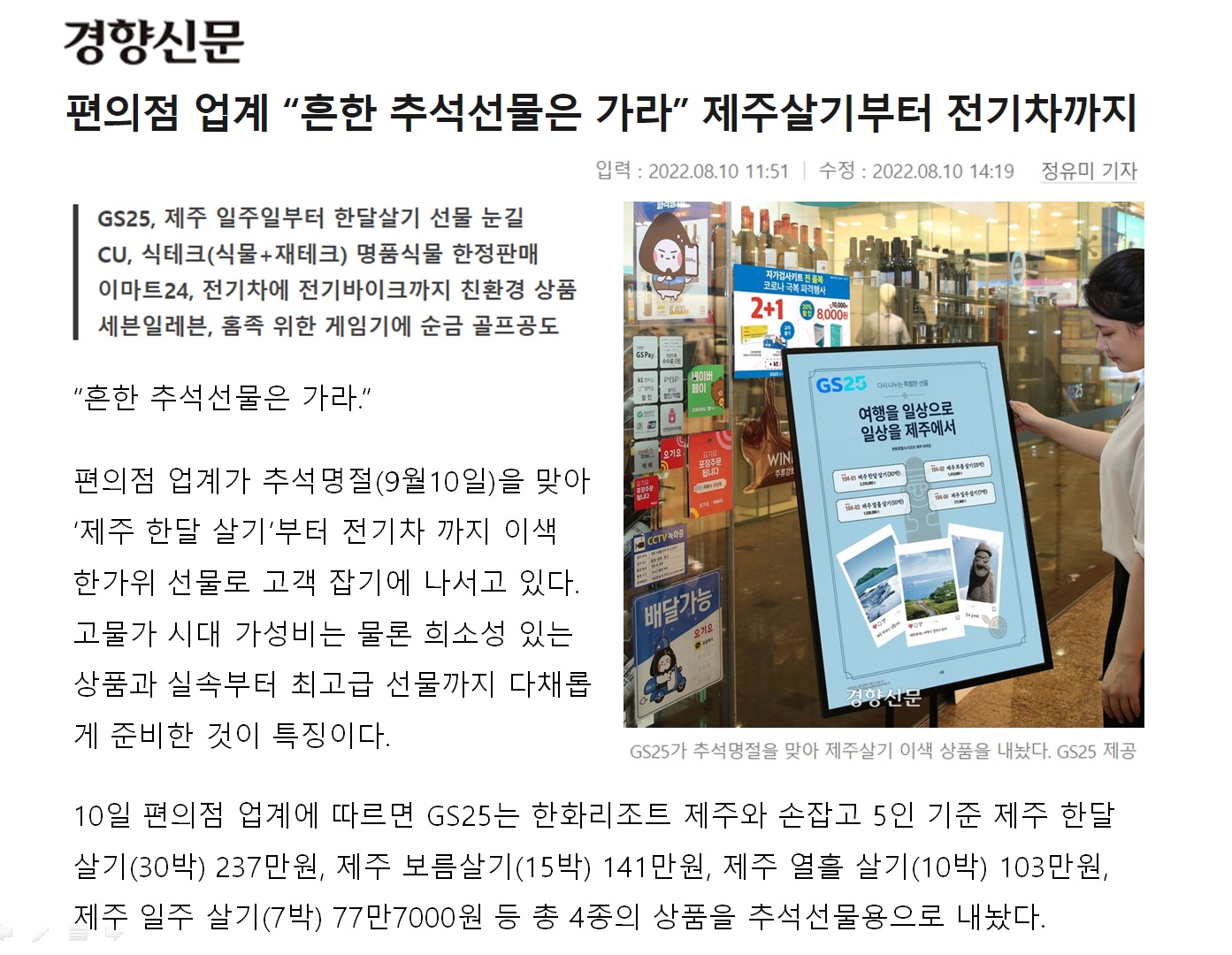 경향신문 _ 제주 살기, 전기차, 전기바이크, 게임기 _ 흔한 추석선물은 가라 _ 편의점 상품 flex