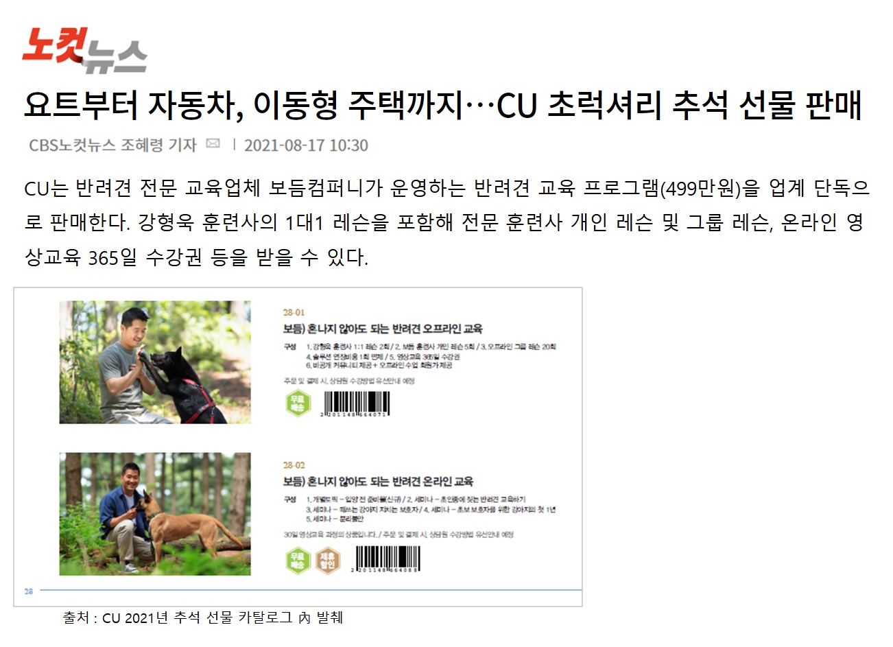 보듬컴퍼니의 반려견 교육 상품 _ 편의점 판매 실시
