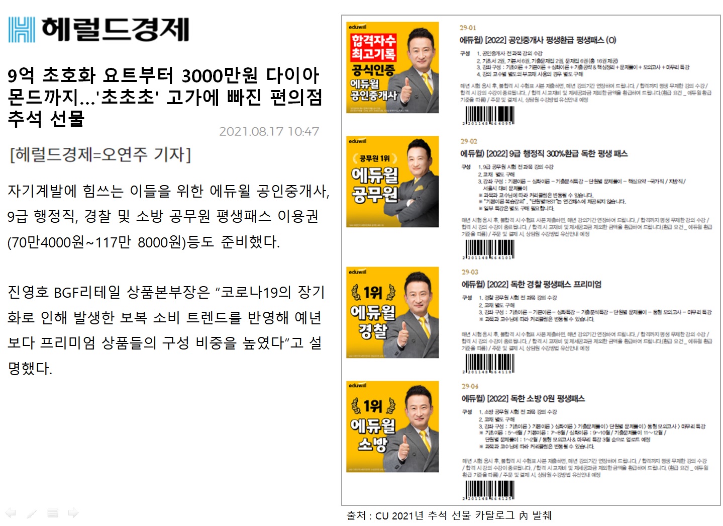 헤럴드경제 _ 편의점 자기계발 상품 출시 _ 에듀윌 / 시원스쿨 강의 상품 출시